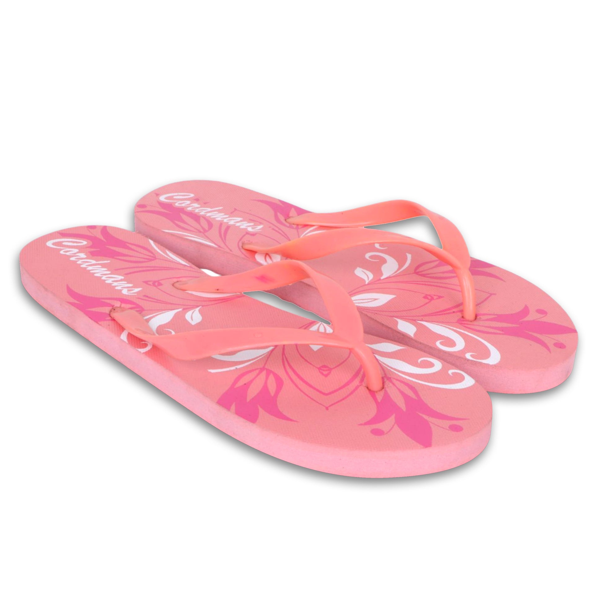 Add a sweet and stylish flair to your step with the Cordmans BloomWave Flip-Flops. Designed with a soft pink base and delicate floral prints, these flip-flops are perfect for women who love a feminine touch in their everyday wear.