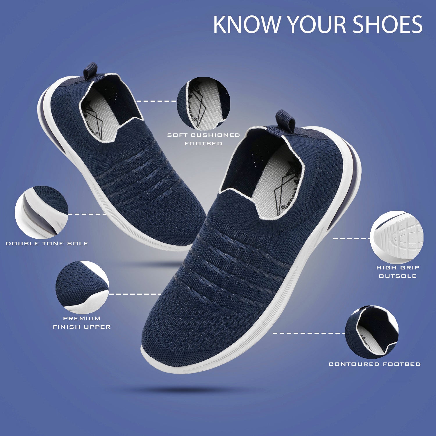 Women’s Navy Blue Slip-On Sports Sneakers – Lightweight & Breathable Walking Shoes